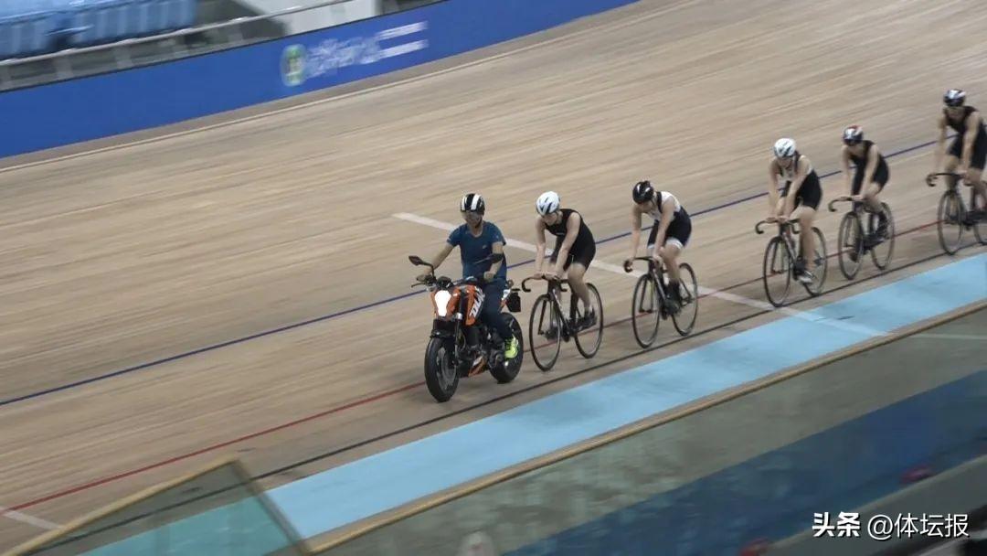 隊員在教練的帶領下,拉圈熱身、追逐摩托車衝刺等有序進行。省場地自行車短組教練闖振強告訴記者——