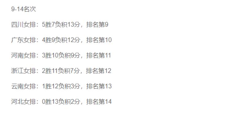 隨着最後一個女排第一階段比賽日的結束,從11月初就開始的,爲期小一個月的女排聯賽初賽也徹底結束,每支隊伍在經過13場比賽的爭奪後,八強名單正式出爐。天津、深圳、上海、江蘇這四支強隊拿下前四,天津更是以0敗局的好成績高居榜首!福建、北京、山東、遼寧暫時拿下了5-8名,四川女排最讓人遺憾,雖然有繆伊雯一點攻大殺四方,依舊排在了第九無緣八強。