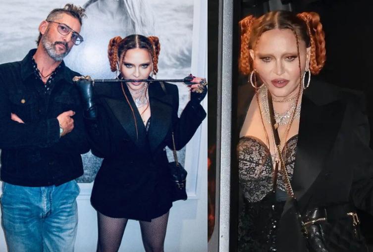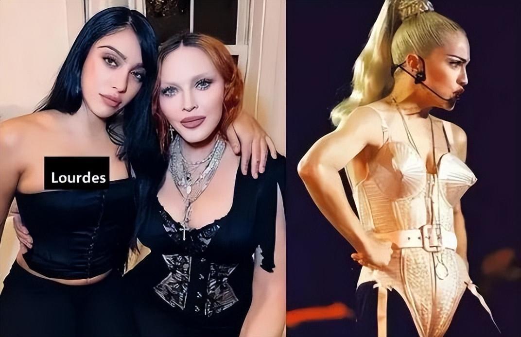 不得不說,麥當娜實在太酷了,乾枯玫瑰色系的脣妝,搭配無眉風格,氣場直接拉滿了,雖然年紀已經很大了,但“麥奶奶”的巨星風範一點沒變,不僅胸衣外穿大秀性感,而且戴着皮手套,手上還拿着皮鞭,還特意選擇了一雙鞋跟差不多能有10釐米的高跟鞋,這種野性的奔放感着實讓人佩服,也只有麥當娜敢這樣穿了。