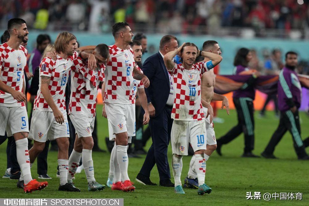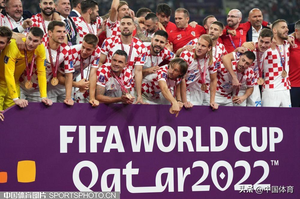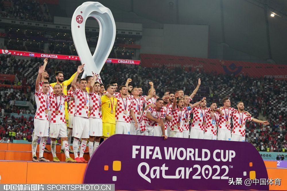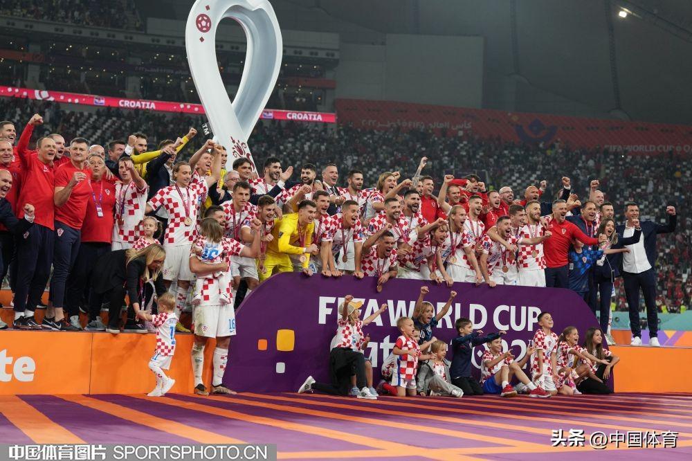 中國體育訊 卡塔爾時間12月17日,2022年卡塔爾世界盃足球賽三、四名決賽結束。克羅地亞隊以2比1戰勝摩洛哥隊,獲得季軍。圖爲克羅地亞隊。(中國體育圖片 李翔 攝)