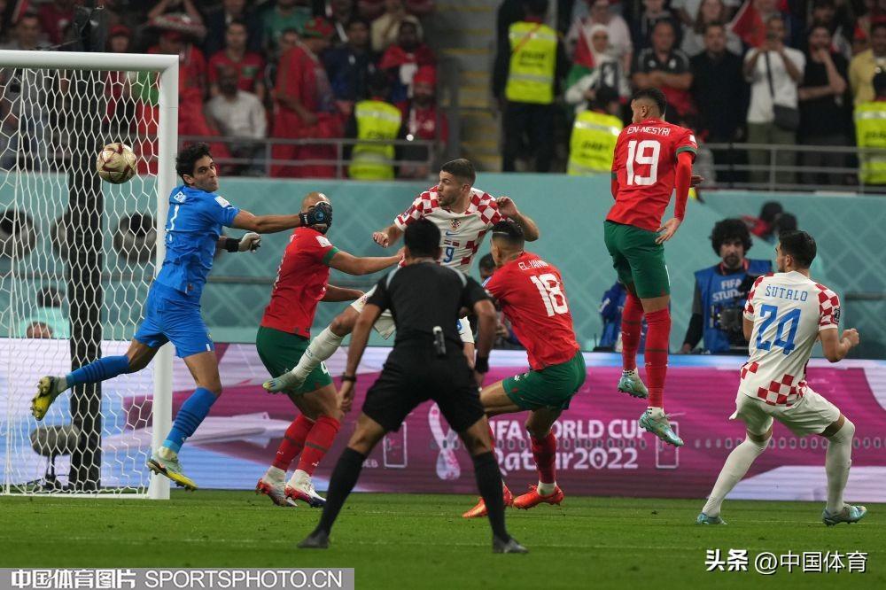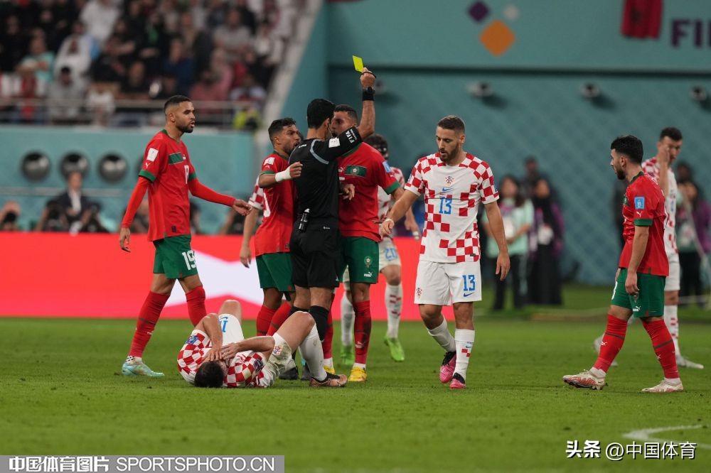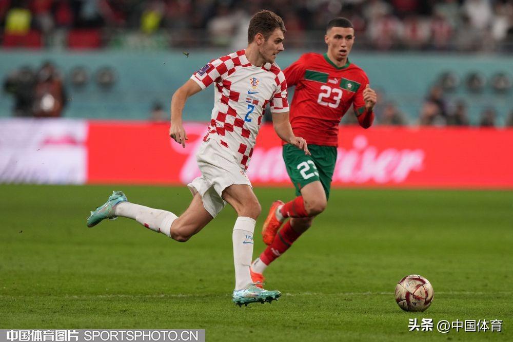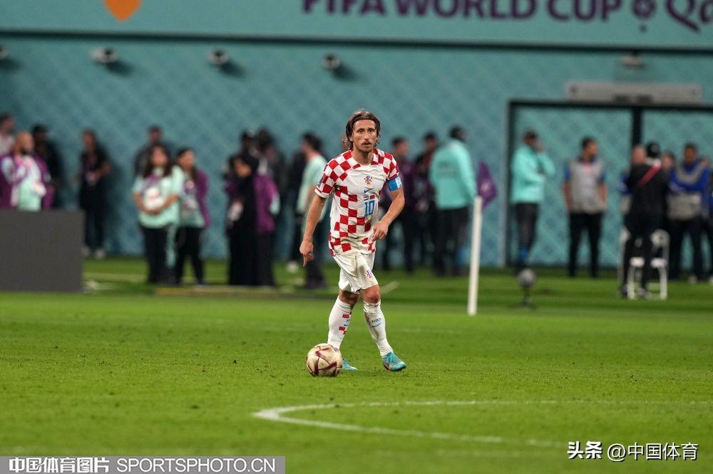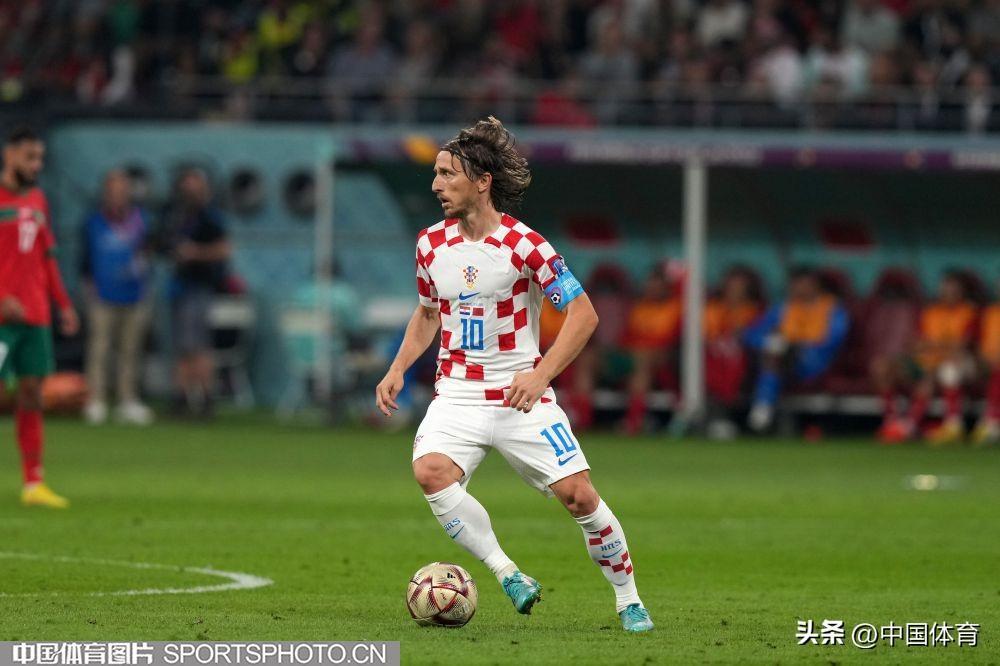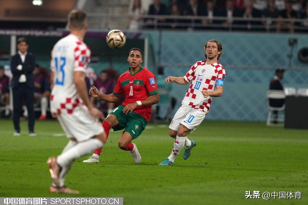 圖爲克羅地亞隊莫德里奇(右)與摩洛哥隊薩比裏
