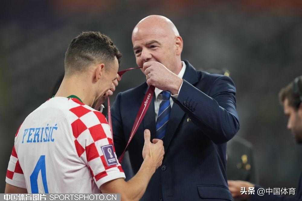 圖爲國際足聯主席因凡蒂諾爲克羅地亞隊隊員佩戴獎牌