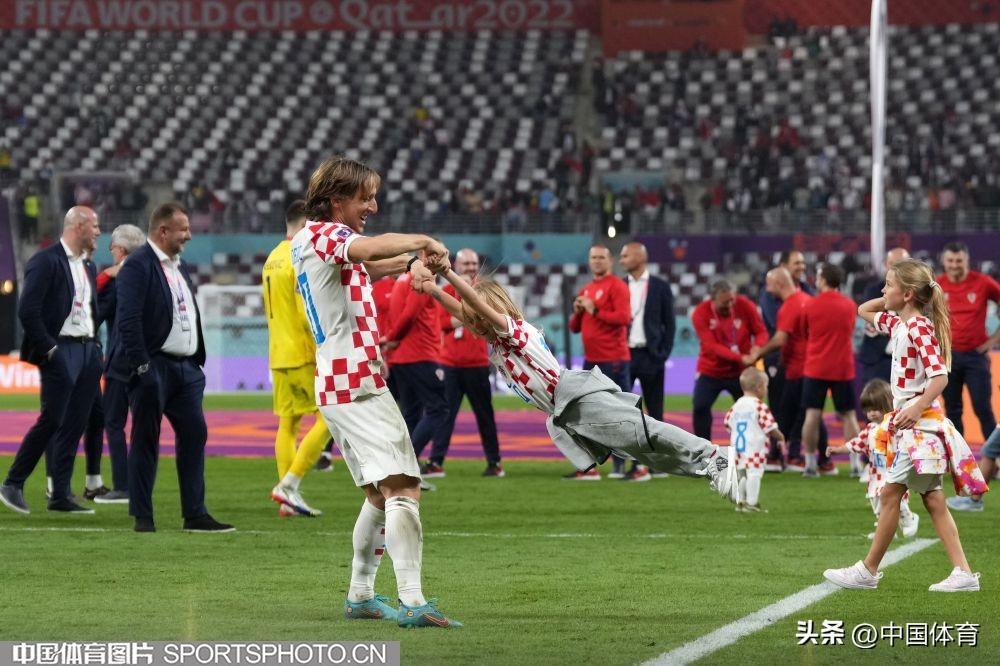 圖爲克羅地亞隊莫德里奇與自己的小女兒一起慶祝