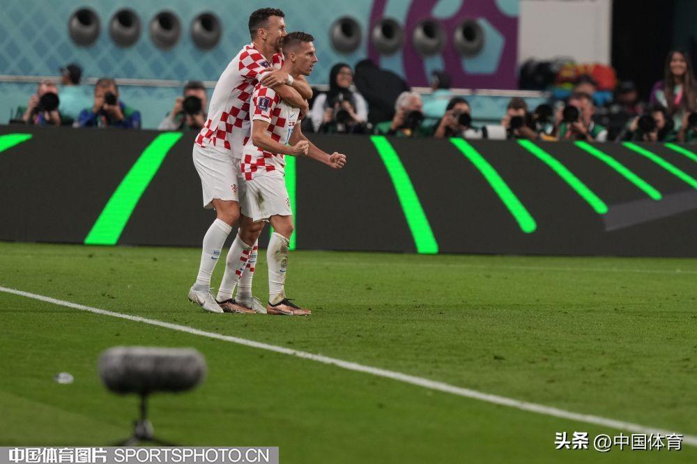 圖爲克羅地亞隊奧爾西奇(右)進球后被隊友抱住