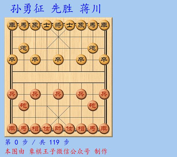 這次蔣川特大志在復仇,不料舊仇未報,又添了新恨,二人纏鬥的過程,孫勇徵執先,中炮七路馬對屏風馬雙炮過河,中盤對攻。
