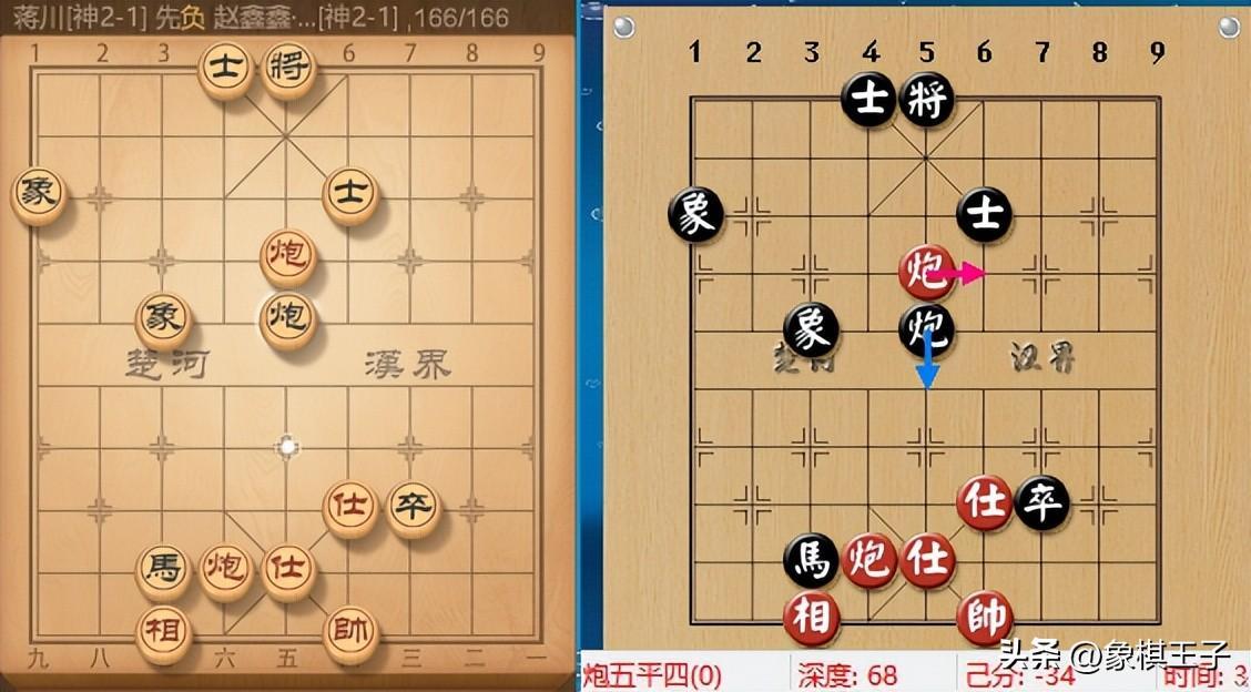 及致末盤,蔣川先手雙炮單缺相對趙鑫鑫馬炮低卒士象全,本是和局成定,蔣川突發意外超時,神劍幸勝。