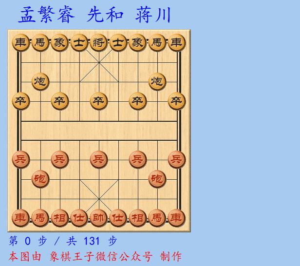 馬炮局中,仍有馬7退9等手段,後馬炮雙卒對馬炮兵,亦是勝機,14歲的孟繁睿非常冷靜,當下面對老大哥,頑強防守,馬兌炮下來,弈入炮兵仕相全對炮雙卒雙象,131手驚險打和。