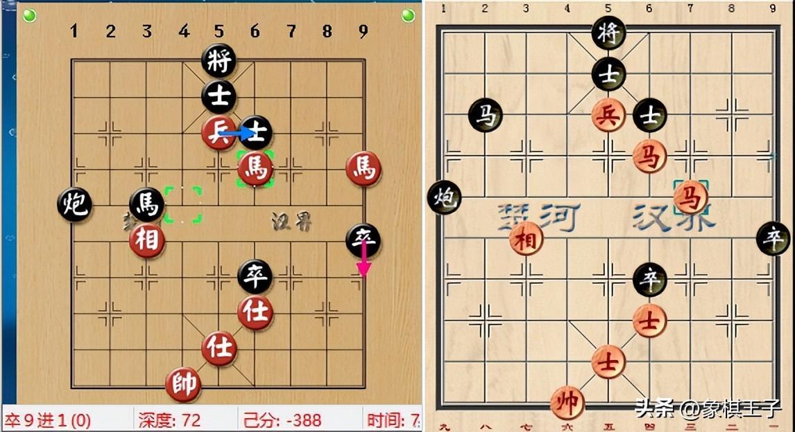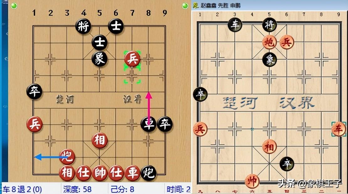 此時,紅棋已大優近千分,極望勝利,可惜神劍一手相五退三,退相成漏,被黑方一炮打邊兵,左右掃描。