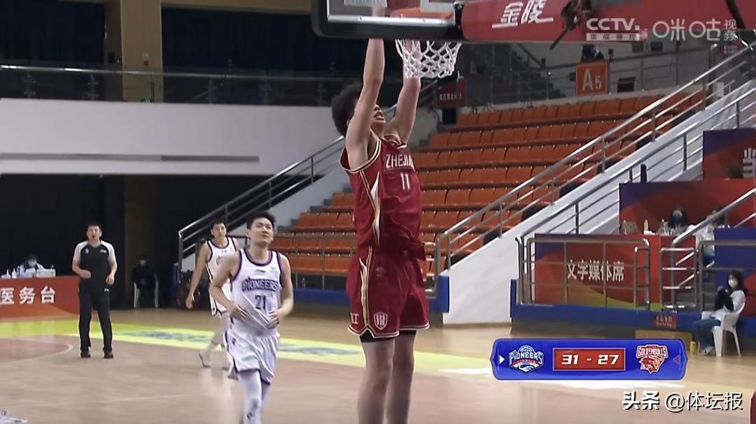 第二節,蓋利和吳前連續外線開火幫助浙江迫近分差,蓋利造殺傷兩罰中一幫助浙江迫近至毫釐之間,劉澤一輕鬆上籃得手完成反超。此時,依然是天津隊的詹姆斯連續得分幫助天津奪回領先。上半場結束,浙江隊僅僅以56:55領先一分,而且4號位劉澤一在上半場就被吹了四次犯規,這對浙江稠州金租男籃下半場的排兵佈陣提出了難題。