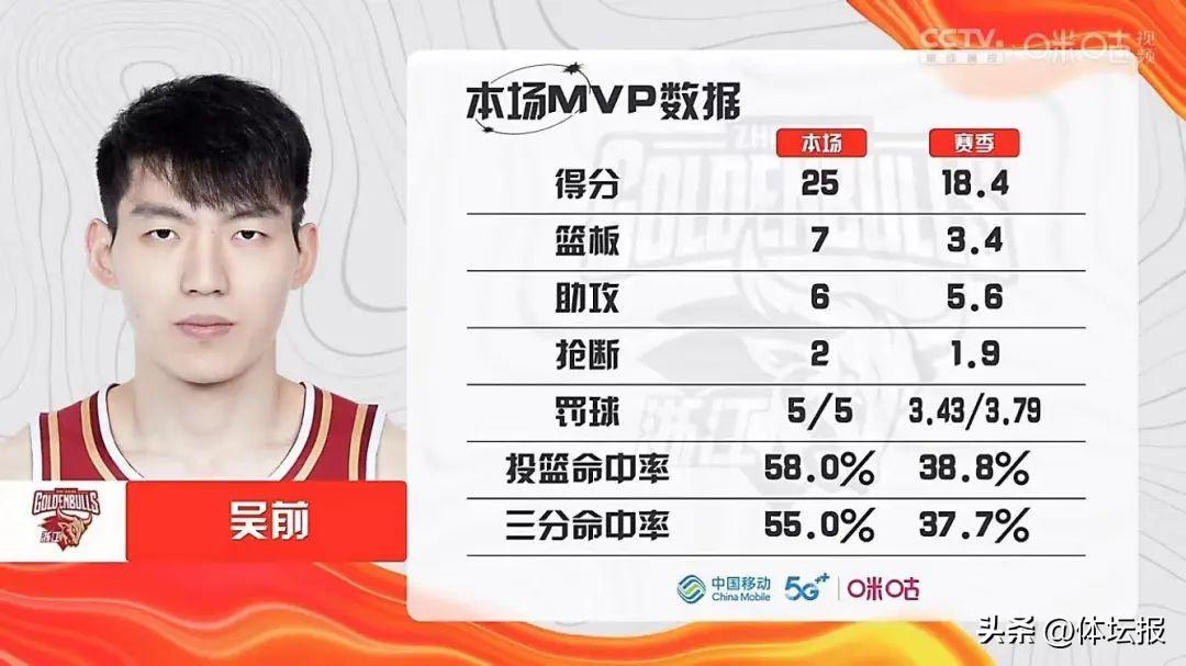 此役,天津隊詹姆斯拿下了30分15籃板,但MVP依然給到了剛剛歸來的吳前。