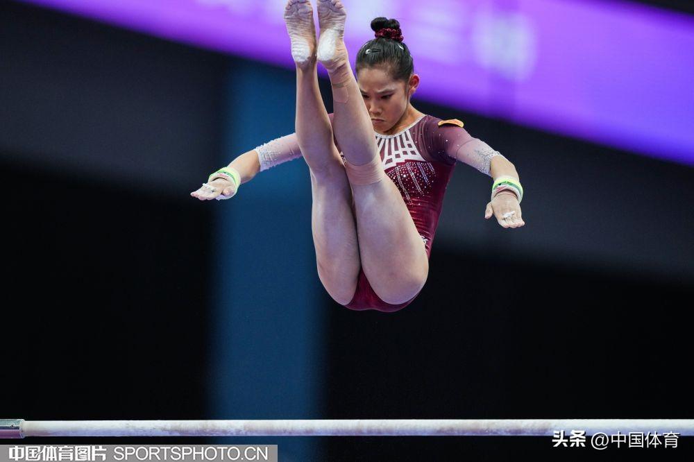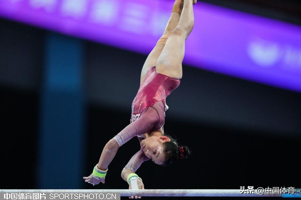 圖爲唐茜靖在高低槓比賽中(中國體育圖片 倪敏哲 攝)