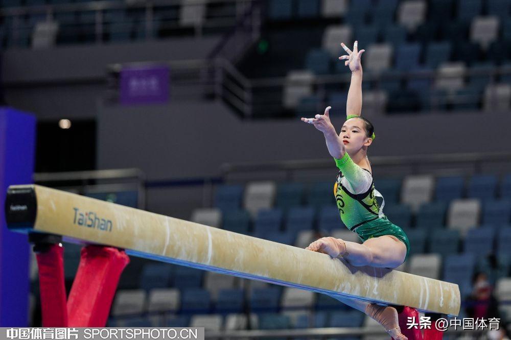 圖爲唐茜靖在平衡木比賽中(中國體育圖片 倪敏哲 攝)