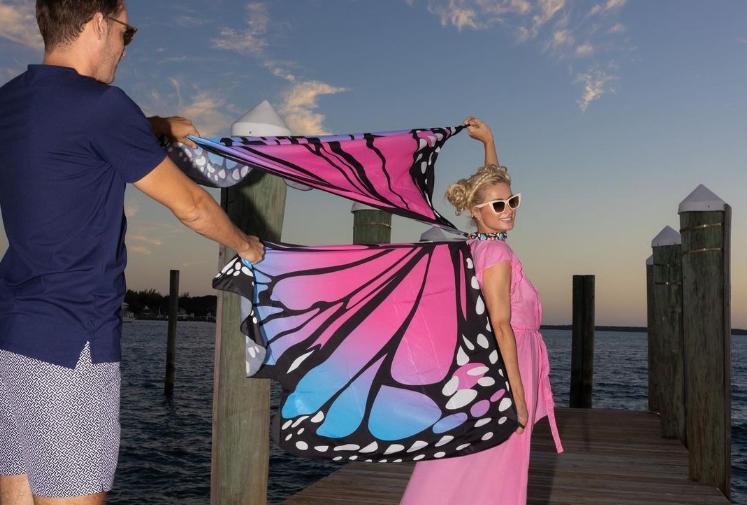 本週,帕麗斯-希爾頓更新了個人INS狀態,分享了一組最新的自拍照,只見,她與富豪丈夫在海邊,大秀恩愛,一向穿衣打扮豔麗的希爾頓,這次居然穿上了一身“蝴蝶裝”,丈夫在身後爲她撐起“翅膀”,41歲的希爾頓迎着海風翩翩起舞,擺出各種造型,雖然說還是很美的,但不少網友還是感嘆:“希爾頓明顯老了,突然有種廣場舞大媽的既視感了!”