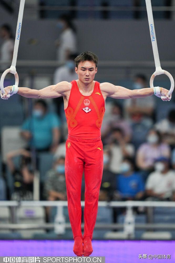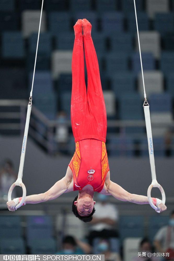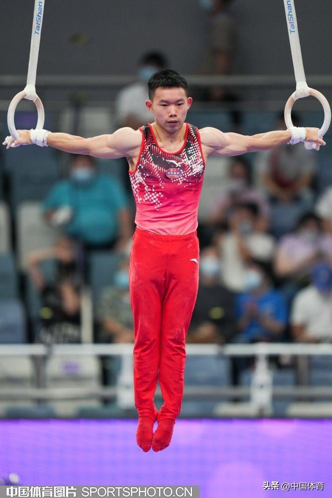 圖爲湖南省選手張博恆在吊環比賽中 (中國體育圖片 倪敏哲 攝)