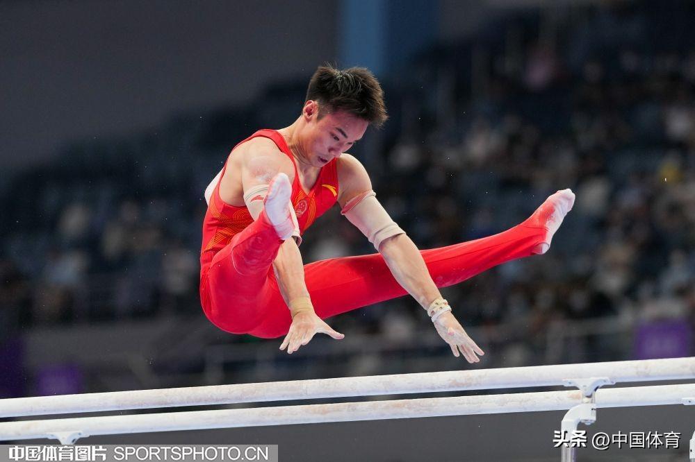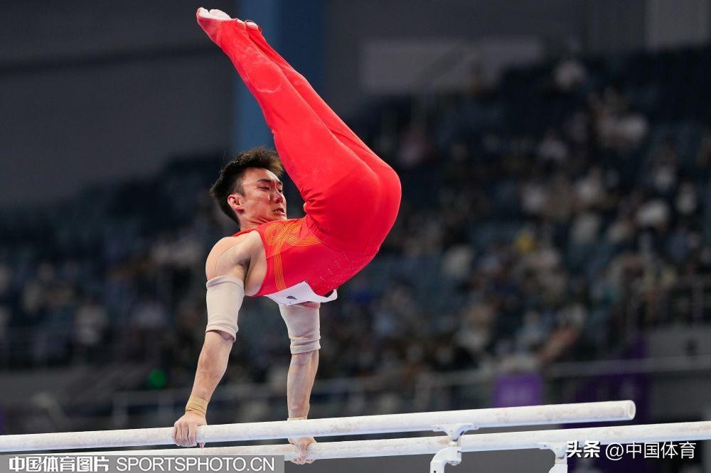 圖爲江蘇選手孫煒在雙槓比賽中 (中國體育圖片 倪敏哲 攝)