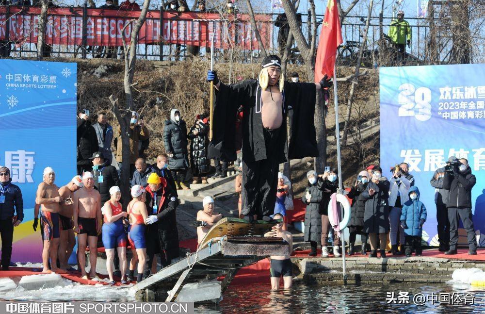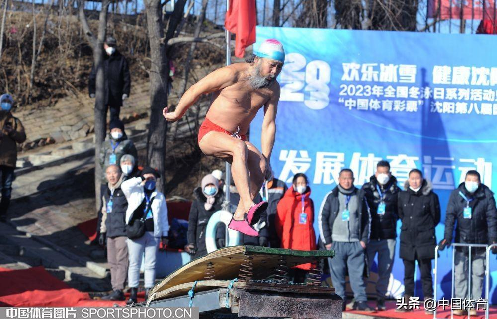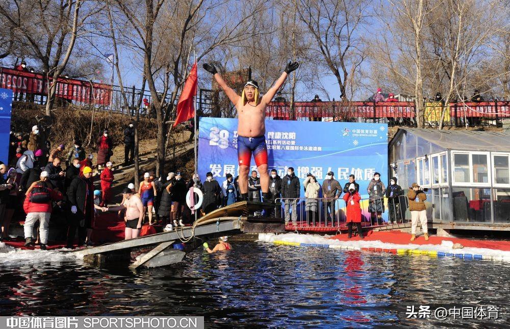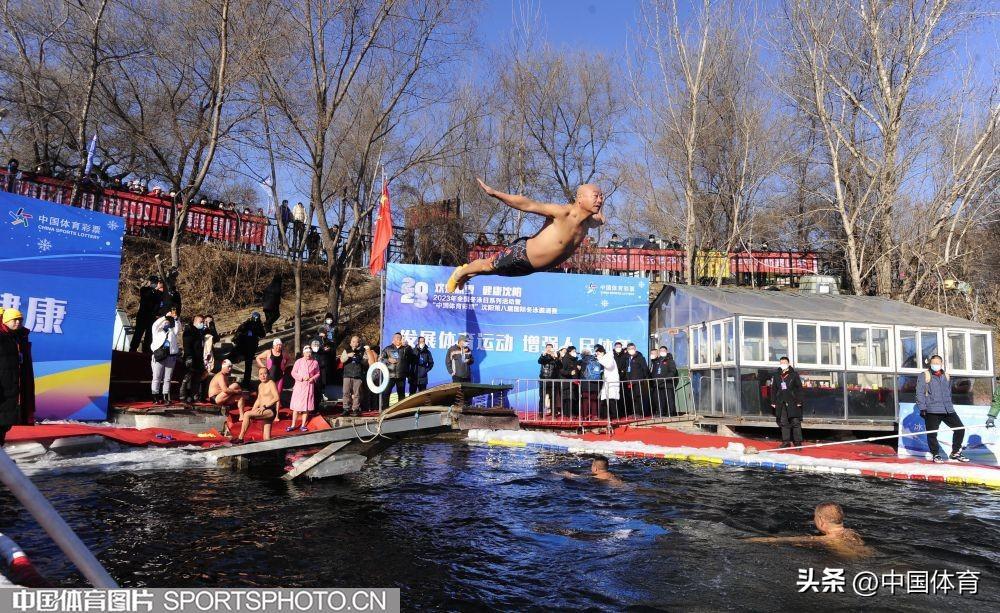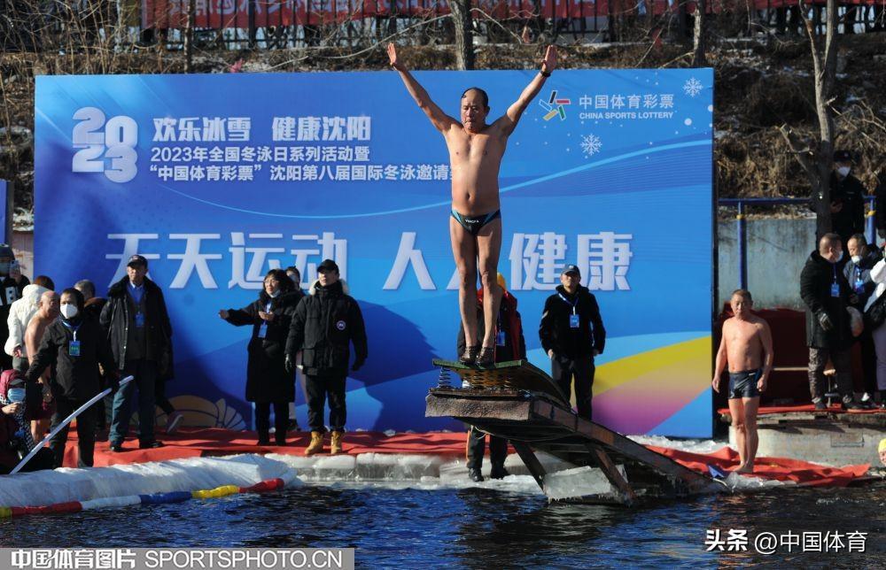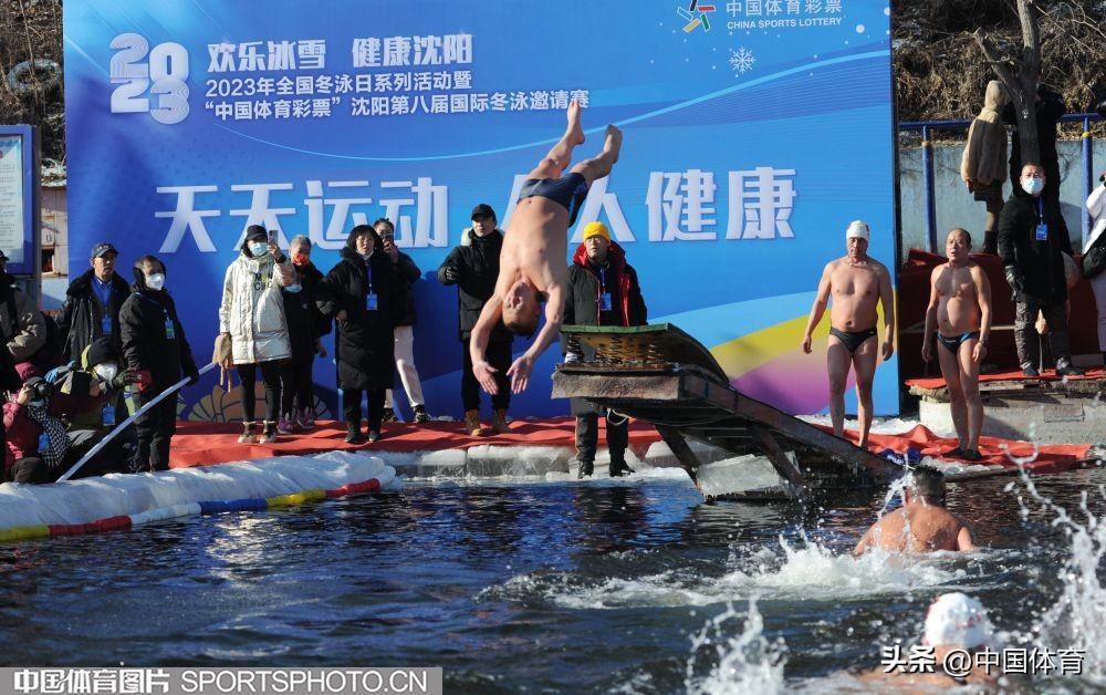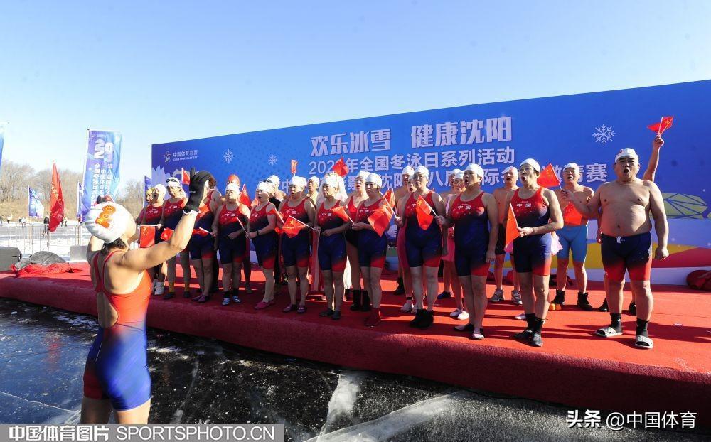中國體育訊 1月1日,2023年全國冬泳日系列活動暨瀋陽第八屆國際冬泳邀請賽在瀋河冬泳基地舉行。冰天雪地,150名瀋陽冬泳人開闢出冰水泳池,演繹着一幕幕精彩的“勇敢者的遊戲”。(中國體育圖片 王江 攝)