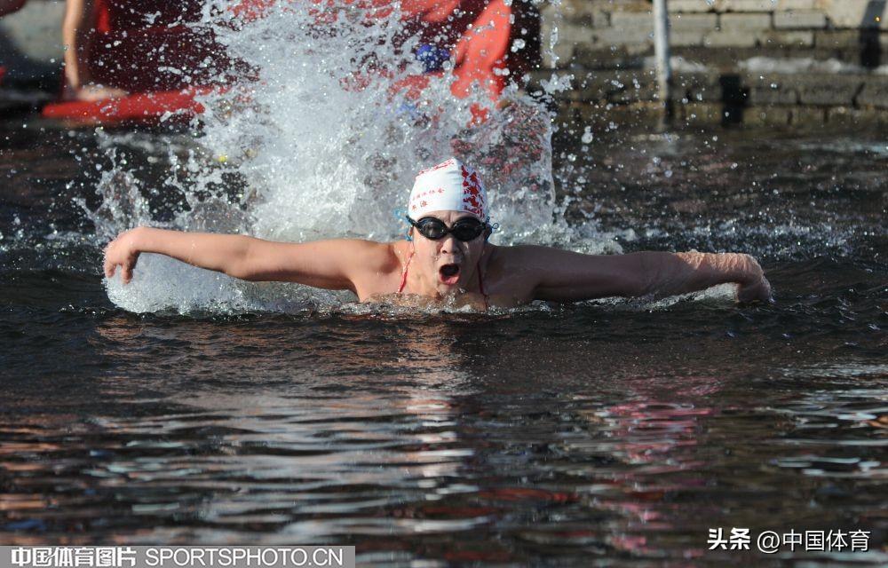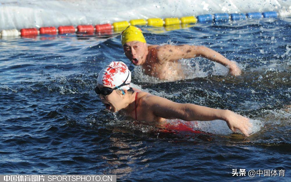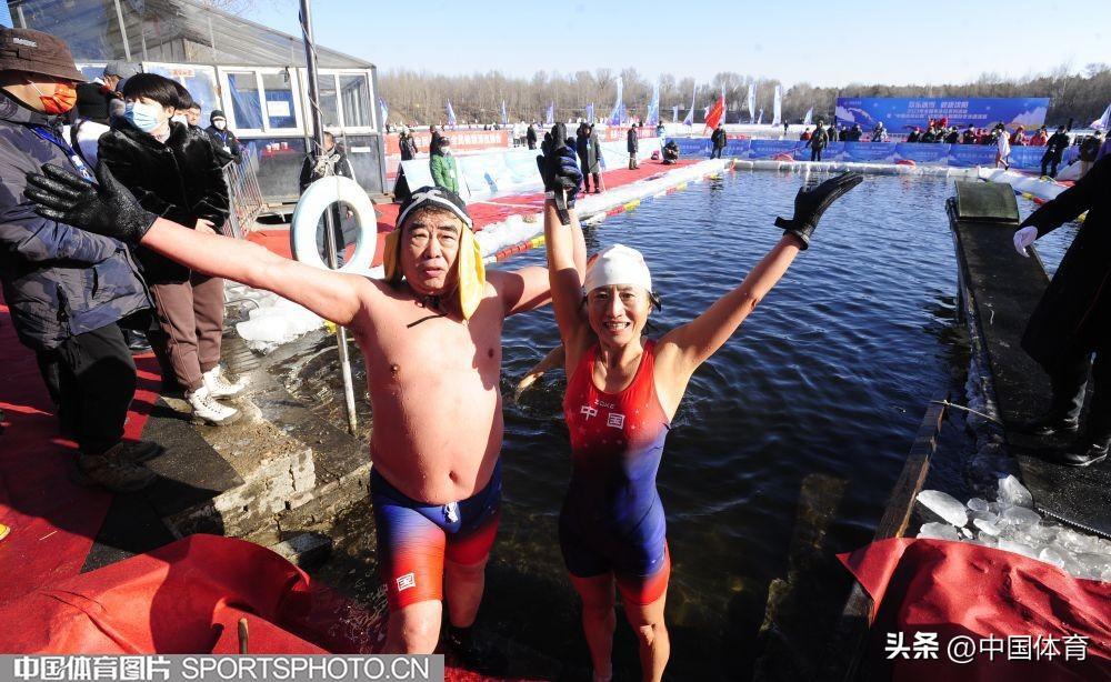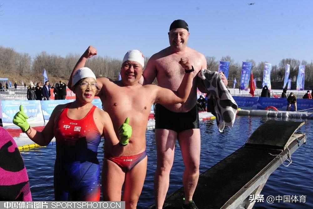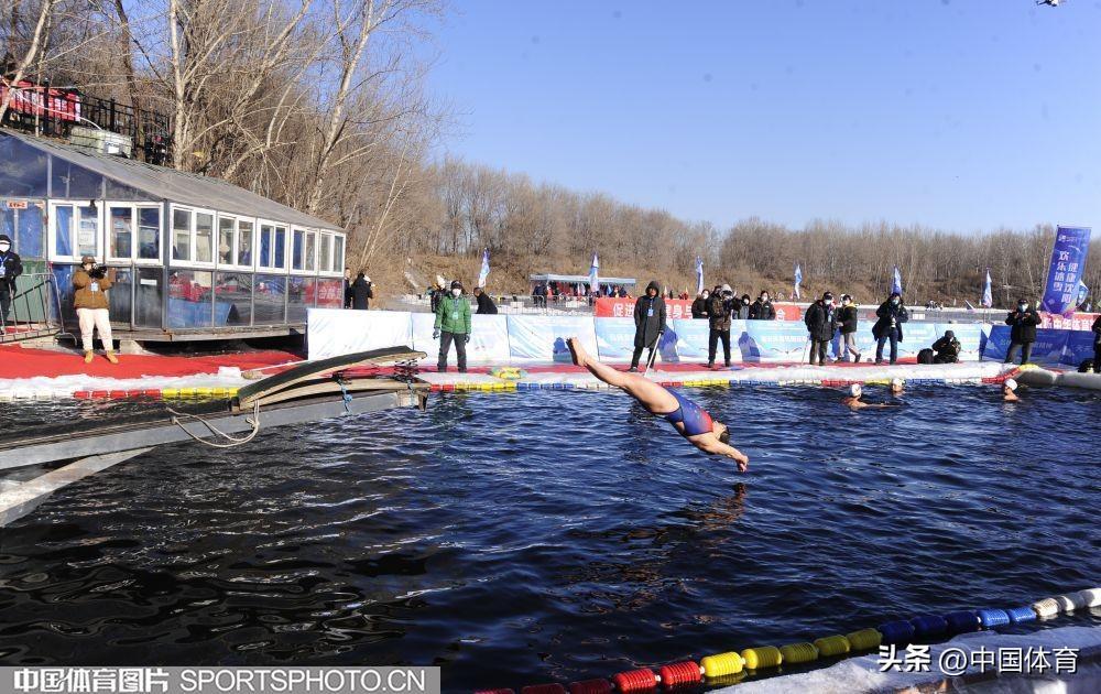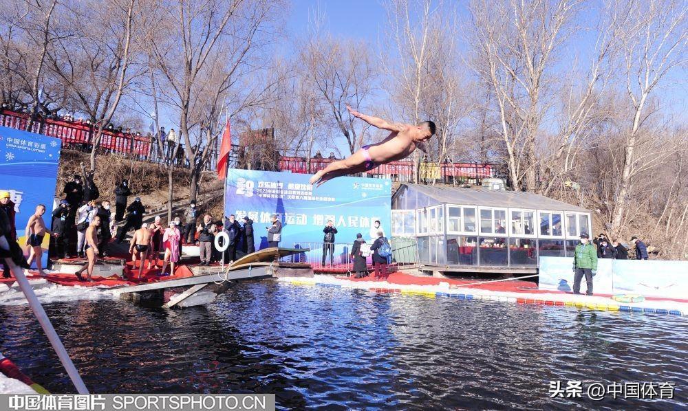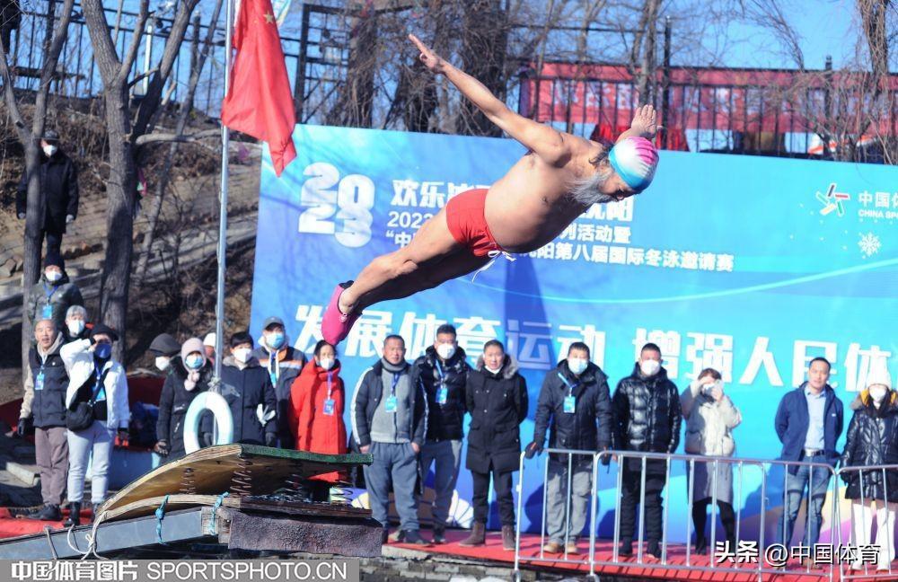 中國體育訊 1月1日,2023年全國冬泳日系列活動暨瀋陽第八屆國際冬泳邀請賽在瀋河冬泳基地舉行。冰天雪地,150名瀋陽冬泳人開闢出冰水泳池,演繹着一幕幕精彩的“勇敢者的遊戲”。(中國體育圖片 王江 攝)