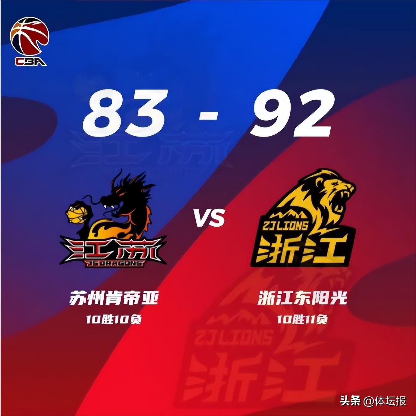 昨天下午結束的另一場比賽,東陽光以92:83力克江蘇,賽季第二次戰勝對手,同樣取得了新年首勝。本場比賽,東陽光四人得分上雙,威爾哲貢獻全場最高的23分,許可拿下17分並命中5記三分,成爲球隊獲勝的一大功臣。
