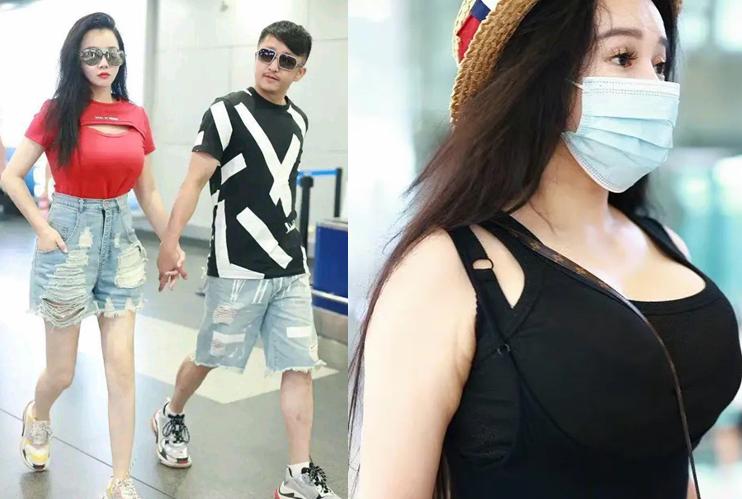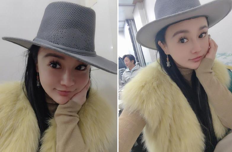 這組自拍照中,還可以看到身後的丈夫鄒市明,而冉瑩穎穿着黃色的貂絨馬甲,戴着諾大的耳環,還搭配帽子擺拍,眼睛水汪汪的,右手輕撫這臉頰,把下巴線條勾勒得更加明顯。