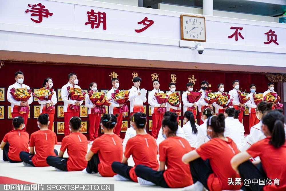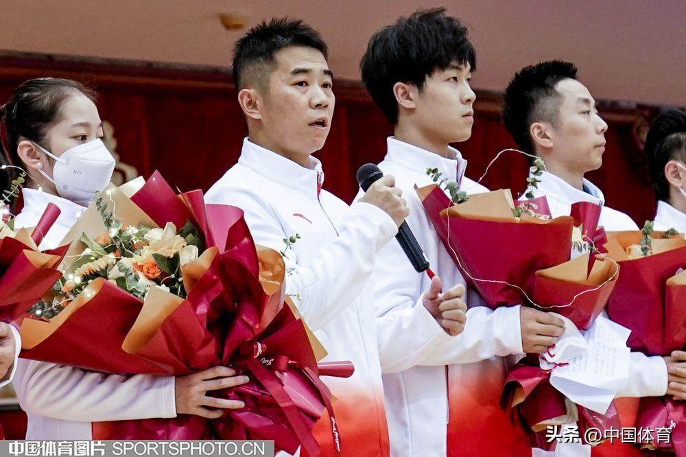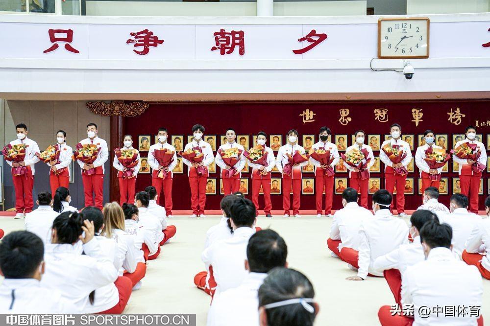 中國體育訊 2023年1月7日,中國體操隊2022年新世界冠軍登榜儀式在國家體育總局體操館舉行。利物浦世錦賽冠軍楊家興榮登冠軍榜。國家體育總局副局長周進強出席登榜儀式,併爲新世界冠軍楊家興揭榜,國家體育總局體操運動管理中心主任繆仲一陪同揭榜。 在登榜儀式現場,在利物浦世錦賽上獲得冠軍的運動員和培養他們的教練員們登臺接受小隊員的獻花。(中國體育圖片 安靈均 攝)