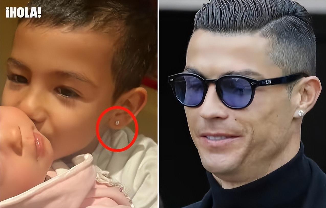 不僅如此,喬治娜還要帶着孩子們一起炫富,根據西班牙媒體《Hola》雜誌最新報道,就連C羅5歲的兒子馬特奧,也被喬治娜“感染”,小小年紀就開始戴上耀眼的鑽石耳釘,跟父親當年剛出道時一樣。
