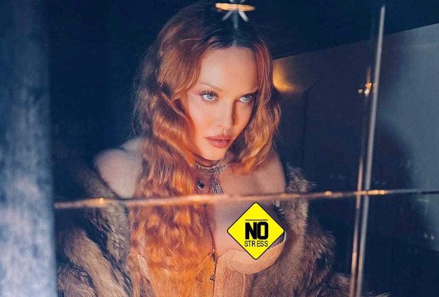 當然,絕大部分時候,麥當娜的曬照都是經歷過“十級美顏”的,所以她的臉蛋毫無瑕疵,別說皺紋了,連一個斑點都找不到,但實際上,人老去的痕跡是無法掩藏的,素顏的“麥奶奶”還是符合歲月的規律,而且她的身材也是發福了,腰間的贅肉一目瞭然,所謂的“凍齡”也更多是靠科技手段。