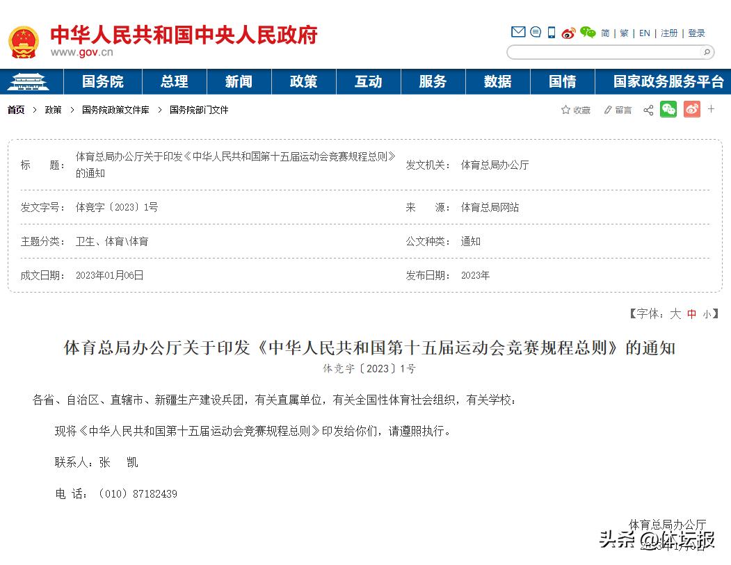 近日,國家體育總局印發《中華人民共和國第十五屆運動會競賽規程總則》(以下簡稱《總則》)。《總則》包括競賽項目、競賽日期和地點、競賽辦法等十四條內容。