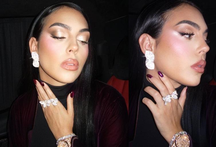 從照片中可以看出,喬治娜從耳朵到手指再到手腕,全部都在“閃閃發光”,右耳位置佩戴着巨大的鑽石耳墜,非常醒目,而雙手更是戴了好幾塊鴿子蛋,與鮮紅的美甲顏色形成對比,視覺衝擊力極強。