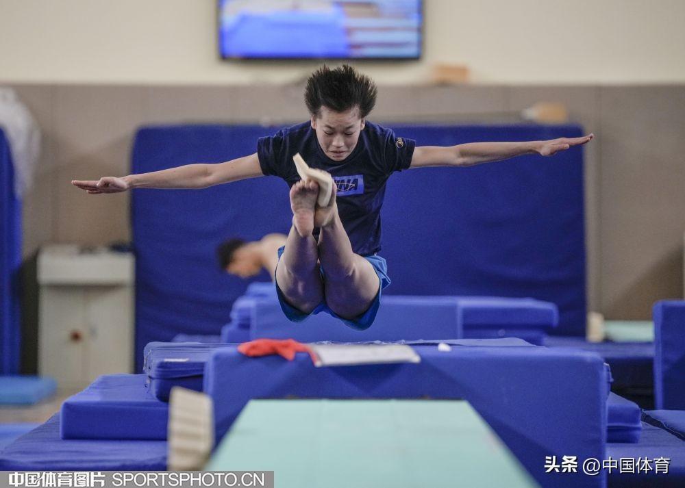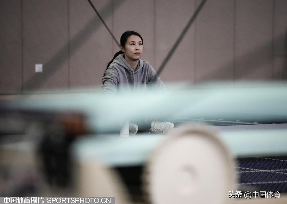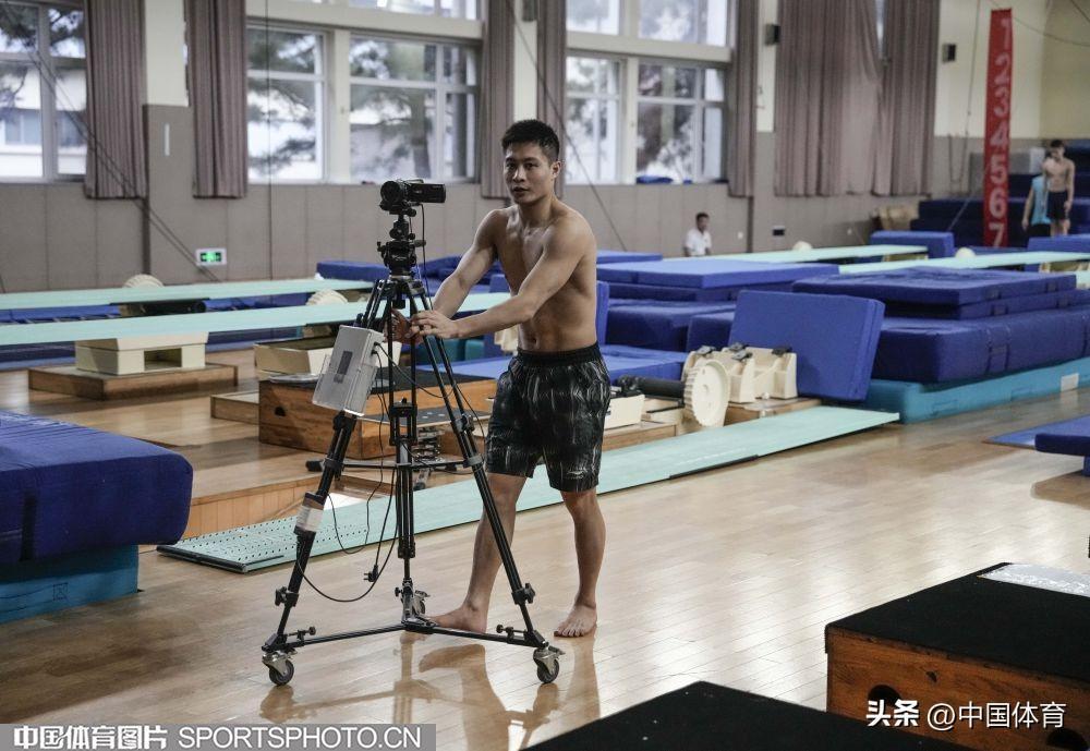 圖爲世界冠軍、老將楊健在訓練中擺放錄像設備