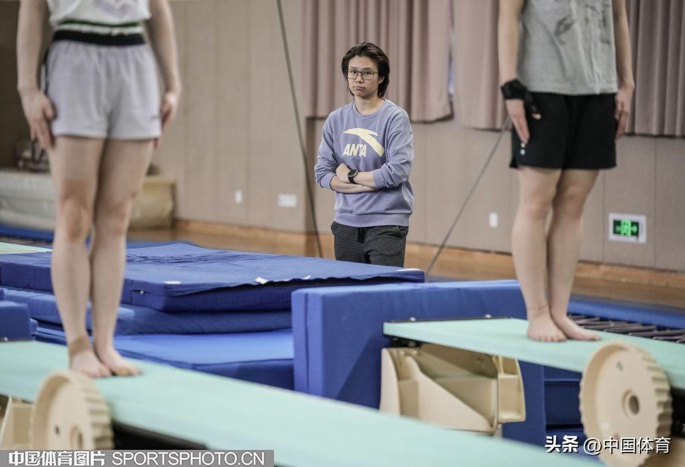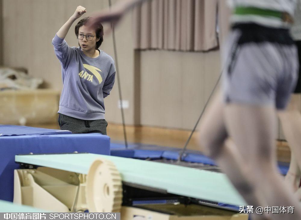 圖爲奧運冠軍、現任教練王涵在觀看運動員訓練