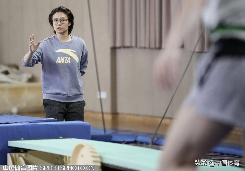 圖爲奧運冠軍、現任教練的施廷懋在指導隊員訓練