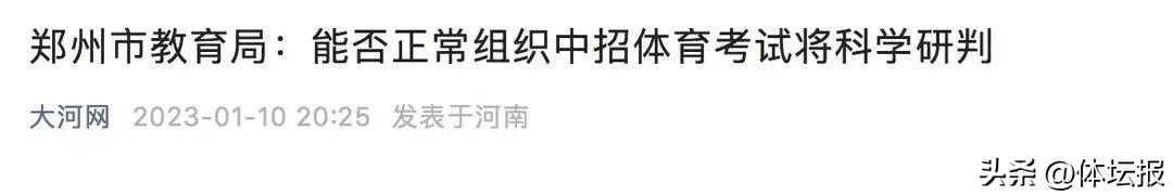 河南鄭州市教育局也表示,距離原定的2023年鄭州市中招體育考試還有三個月左右時間,在此期間將密切關注學生“陽”過之後的身體、心理狀態變化情況,綜合各方面因素,深入分析、科學研判,第一時間向家長和學生通報能否正常組織中招體育考試。