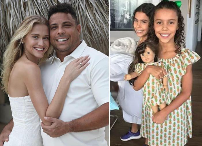 說其他的感情史,大羅在此之前結了三次婚,第一次是1999年,與巴西女足球員米蘭妮,兩人生有一個名叫羅納德(22歲),第二次婚姻是2005年和巴西名模達妮拉-茜卡蕾莉,僅僅幾個月後就離婚了,到了2008年,“外星人”又和比亞·安東妮結婚,5年婚姻育有兩個女兒。