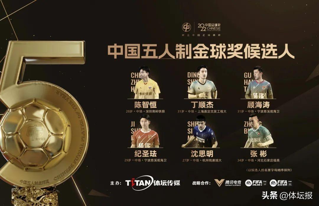 五人制足球向來是浙江足球的一大強項,在本屆中國五人制金球獎提名的6人中,浙江佔據了三席。在本賽季的全國五超聯賽中,寧波慈溪觀海衛獲得了亞軍,創造了球隊參賽以來的最好成績。球隊核心顧海濤、紀聖琺得以入圍金球獎也在意料之中。衛冕冠軍杭州錢唐湖大雖然只獲得聯賽第四,但主力射手沈思明的表現依然可圈可點,多次爲球隊力挽狂瀾讓他得以入圍本次評選。