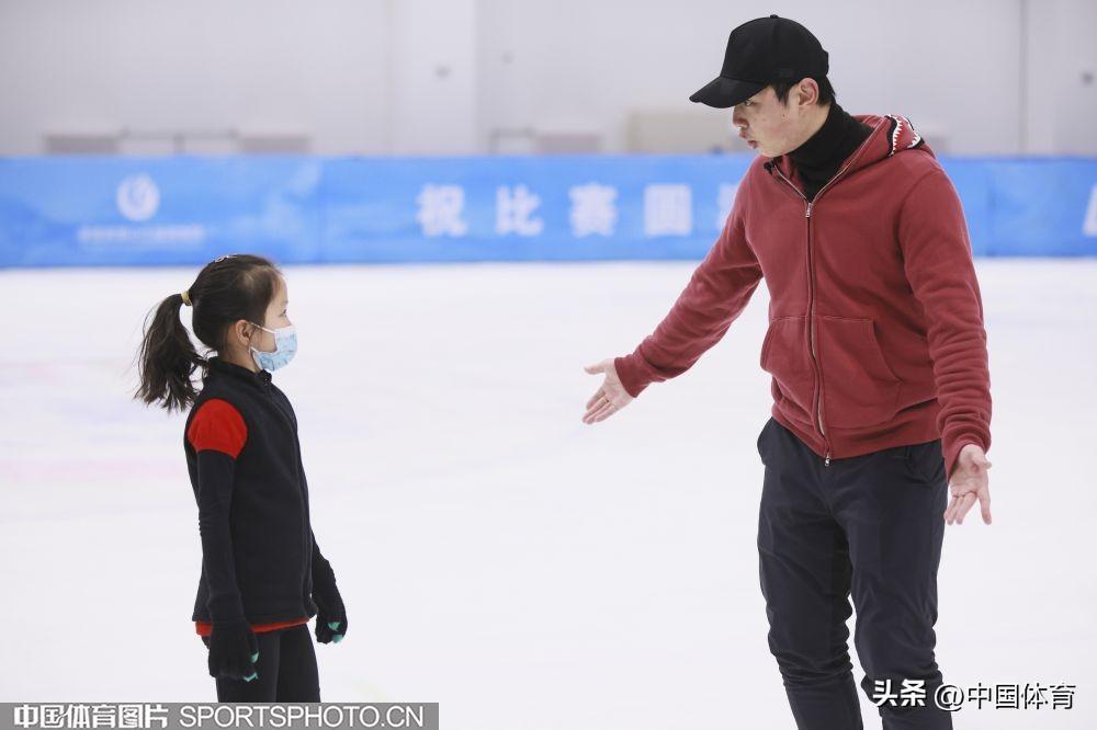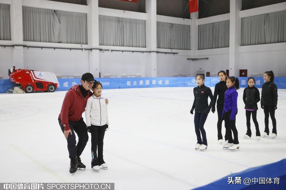 [圖集]大手拉小手-雙人滑名將金楊爲河北省冬季項目青少年訓練營花樣滑冰項目運動員授課
