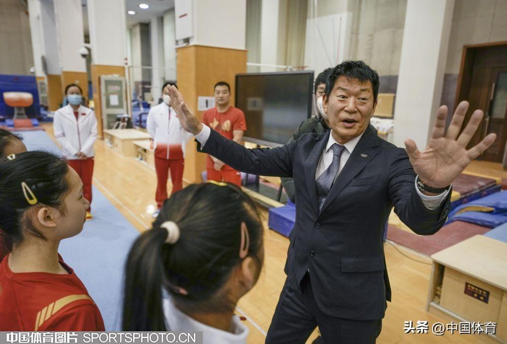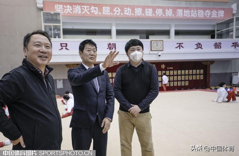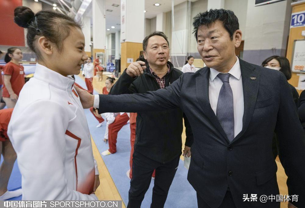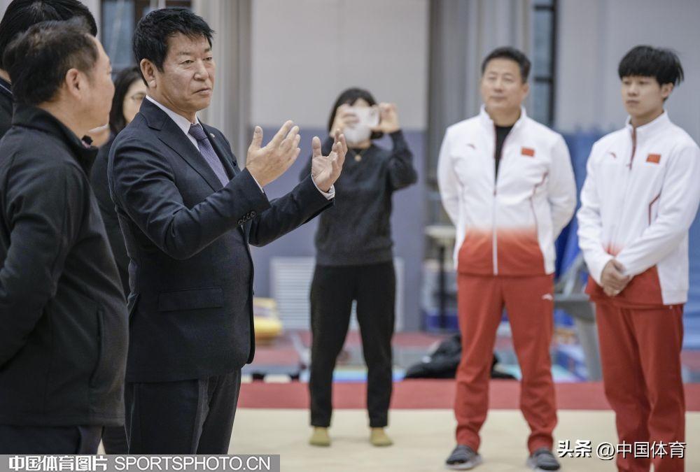 中國體育訊 2023年1月13日,國際體操聯合會主席、國際奧委會委員渡邊守成來到國家體育總局訓練局體操館參觀,並觀摩中國體操運動員訓練。(中國體育圖片 魏徵 攝)