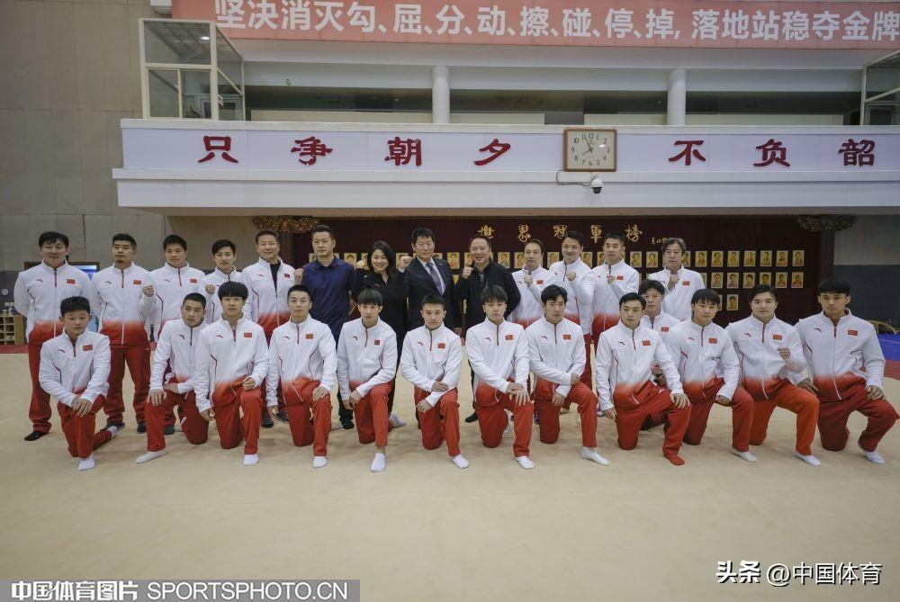 圖爲渡邊守成與中國體操男隊教練、隊員合影留念