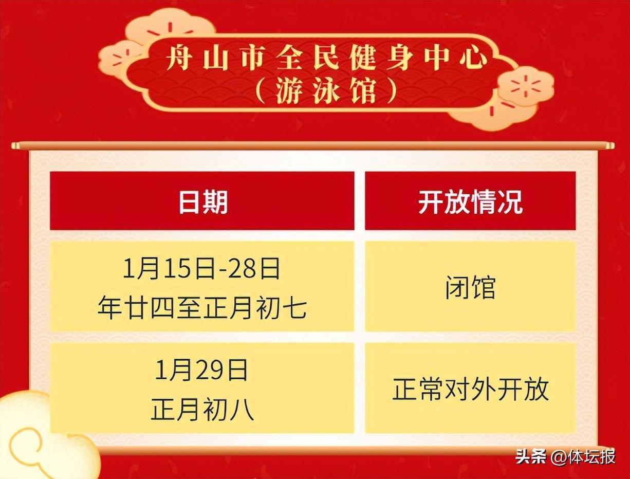 游泳館 1月12日起恢復對外開放。1月18日-24日歇業歡度春節,1月25日(正月初四)恢復正常開放時間。