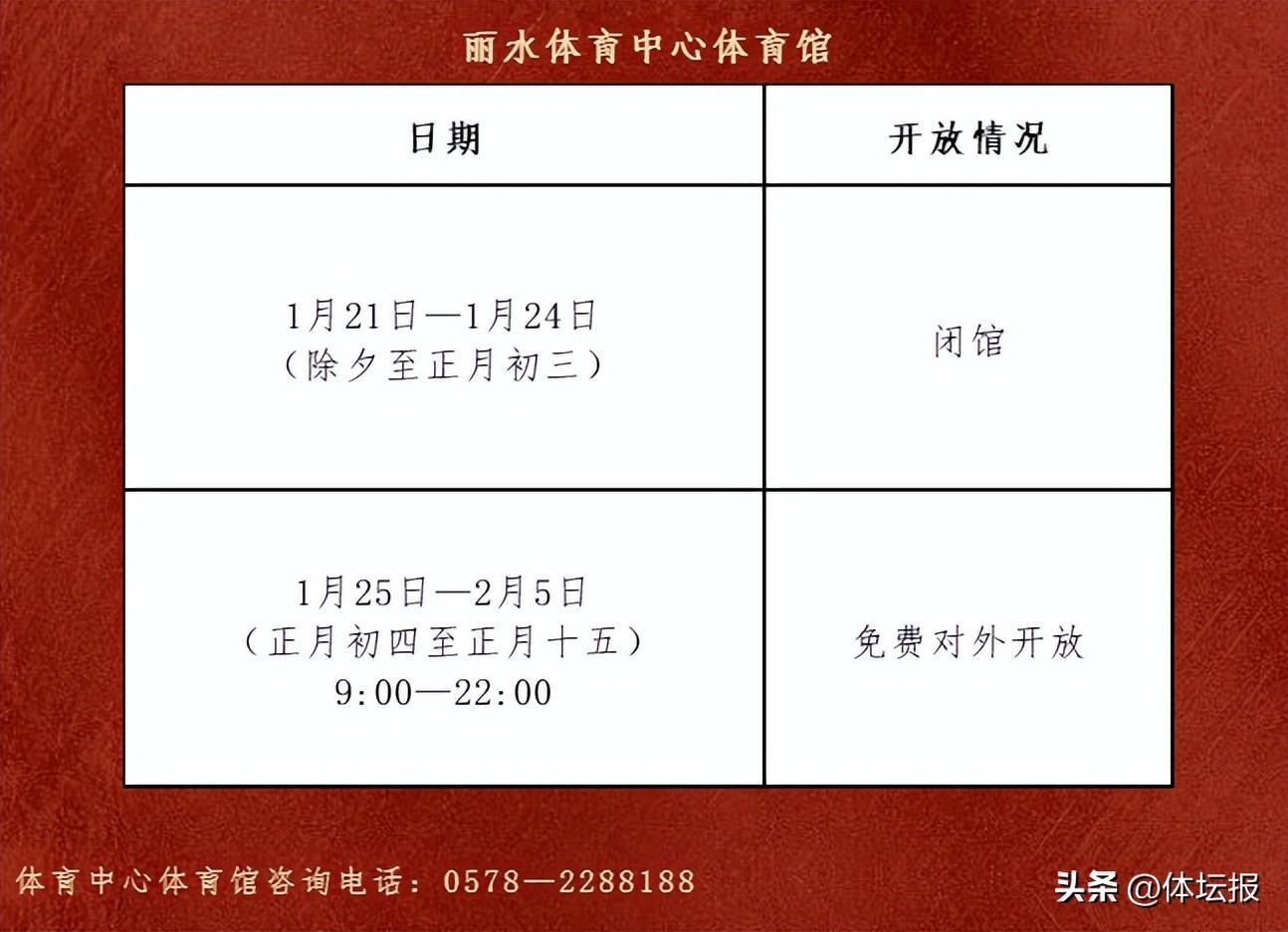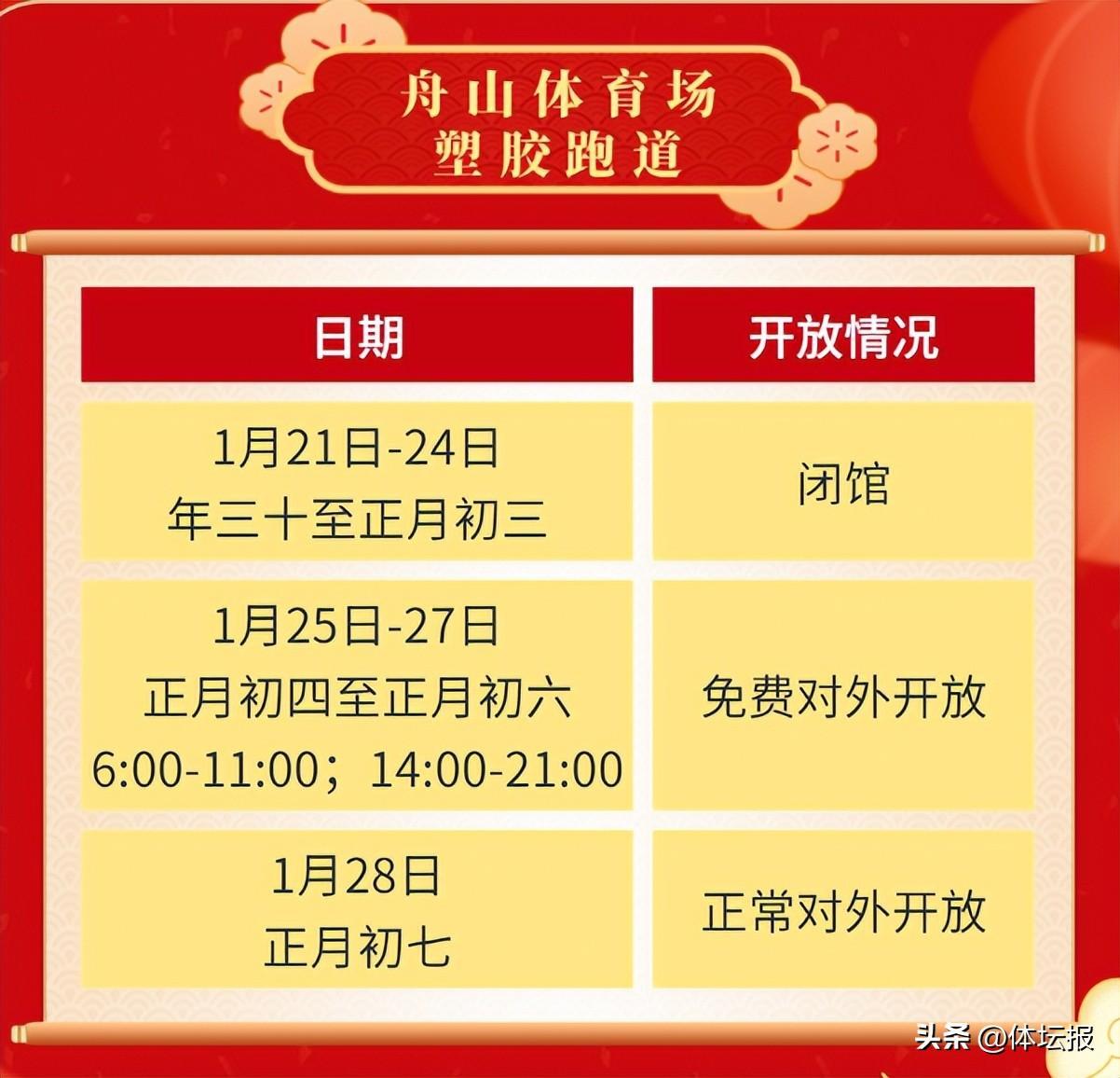 體育場:1月21日-27日(除夕-初六)5:30-7:30(早)