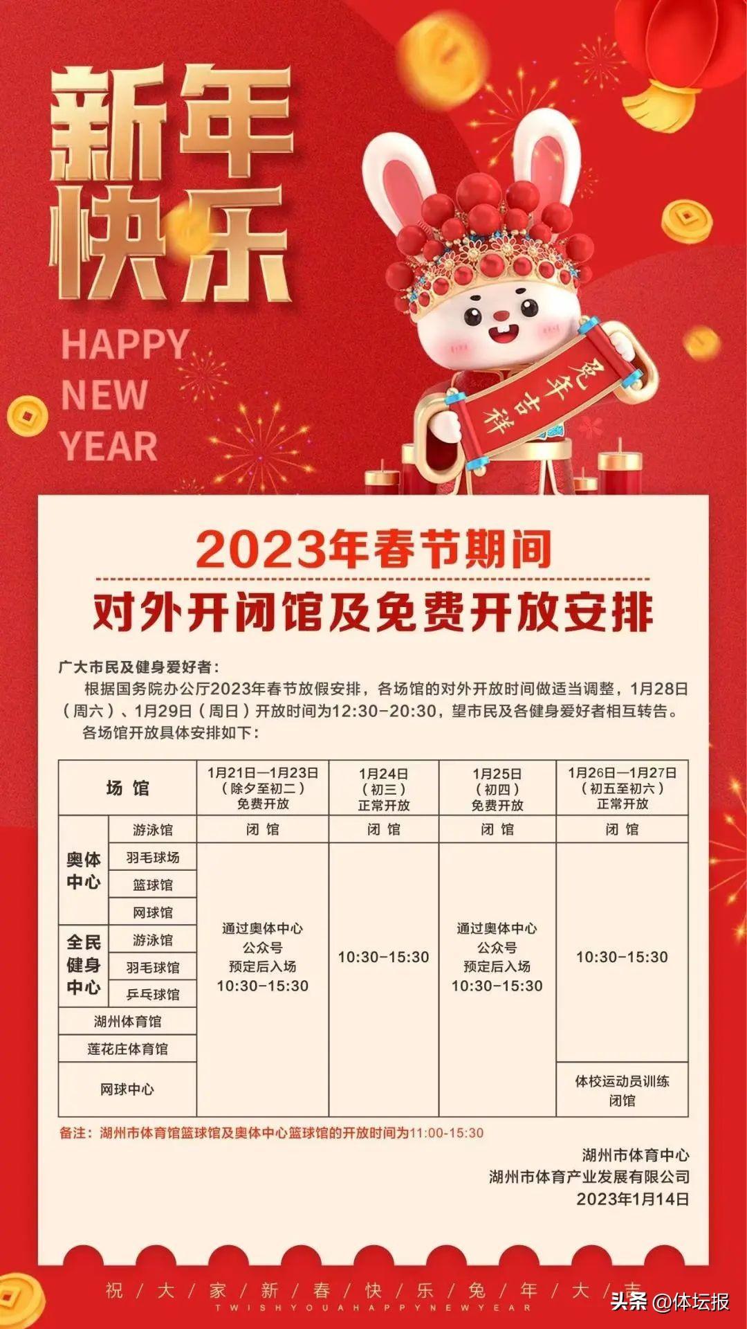體育場、游泳館、體育館 免費開放:1月22-24日(初一-初三),8:30-17:30