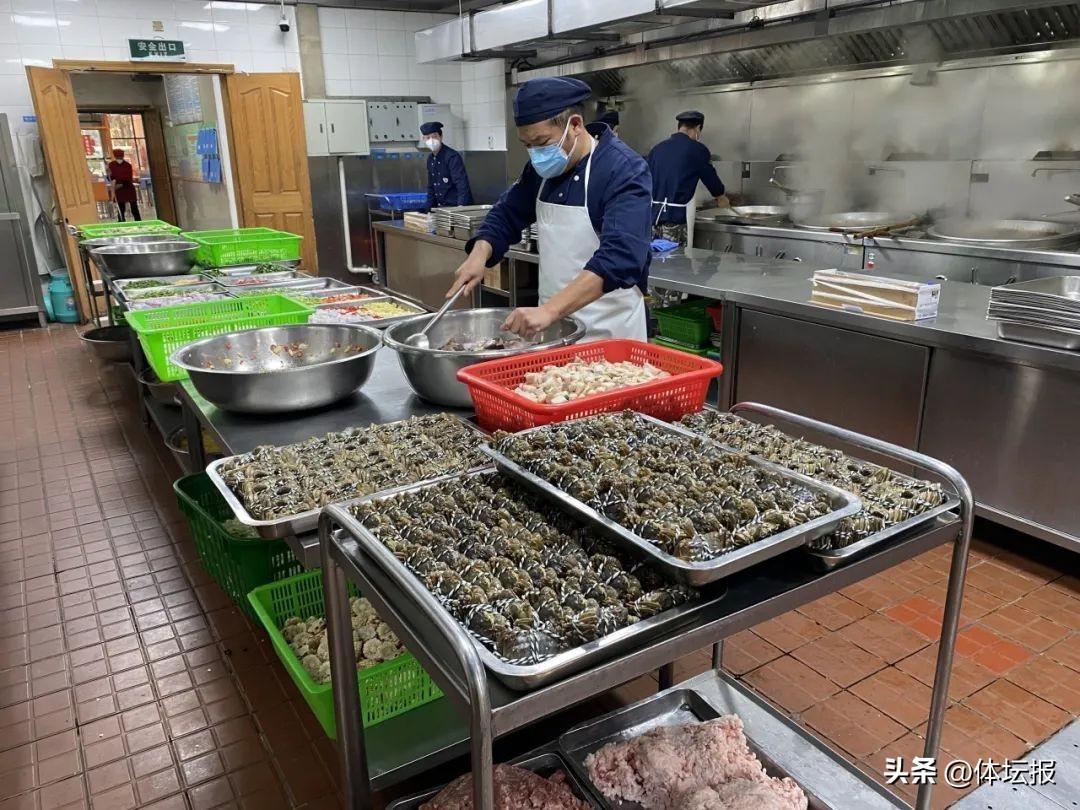經過檢驗,保證食材真材實料與新鮮品質後,方能順利進入廚房,成爲“舌尖上的一員”。綜合管理處膳食科科長鄭素琴介紹,學院食堂分爲清洗區、切配區、爐臺間、麪點房及洗消區。冬訓期間,每天會準備16道菜、3種煲湯,包括點心、牛奶、水果等,其中,餛飩、水餃、包子等麪點都是純手工製作,讓運動員喫得安心。