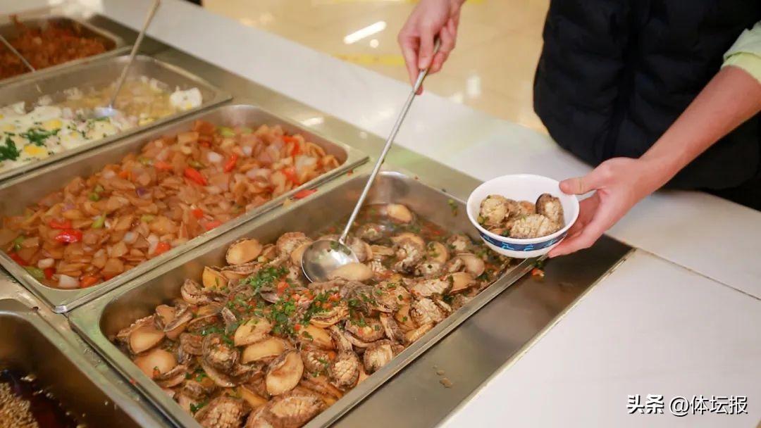 被稱爲“冠軍搖籃”的浙江體育職業技術學院,有着超高人氣和口碑的食堂。中午11點,運動員食堂已排起長龍,剛出鍋的羊蠍子熱氣騰騰、香氣四溢,鮑魚、牛肉、海鮮、甜品、水果等十幾種菜品琳琅滿目,色香味俱全。