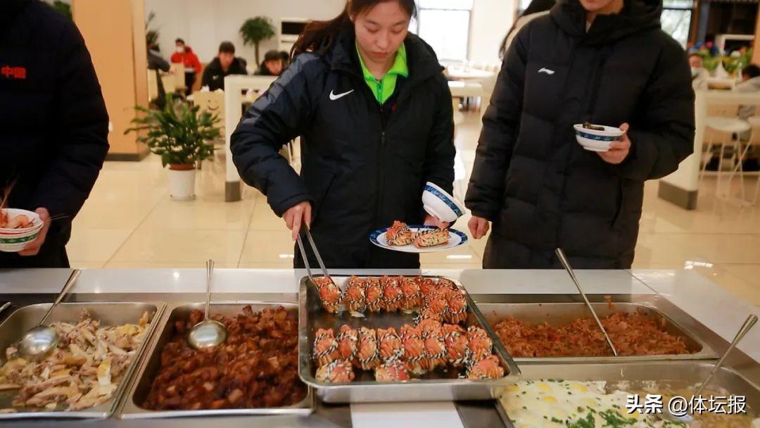 作爲一年中最關鍵的備戰階段,冬訓食譜都是爲運動員量身定製的。廚師長魯傳軍告訴記者,冬訓基本上以牛、羊、豬肉爲主,特別增加了煲湯。“冬訓期間,我們會採取煲湯的形式烹飪牛肉、羊肉、水產,這樣不僅保溫,還能增加熱量和力量,提高免疫力。”魯傳軍還透露,最受歡迎的菜有烤羊排、東坡肉、水煮肥牛、酸菜牛蛙等。“有些運動員能喫這麼一大盤蝦。”魯傳軍比劃着手勢,臉上滿是自豪的笑容。