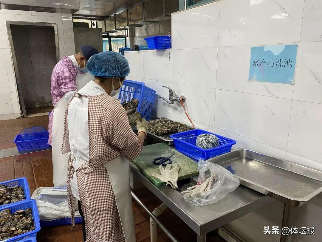 另一邊,載滿各種食材的專用冷鏈貨車開進食堂收貨通道。凌晨5點多,採購驗收負責人林進羣就摸黑開始清點、驗收並覈對食材的檢測報告,作爲食堂的“把關人”,起早貪黑已經成爲他的習慣。“學院食堂是爲運動員服務的,反興奮劑對運動員來說是頭等大事,採購驗收工作一點都不能馬虎。”林進羣說,工作8年,經手的食品安全衛生和質量一直都是“零差錯”。