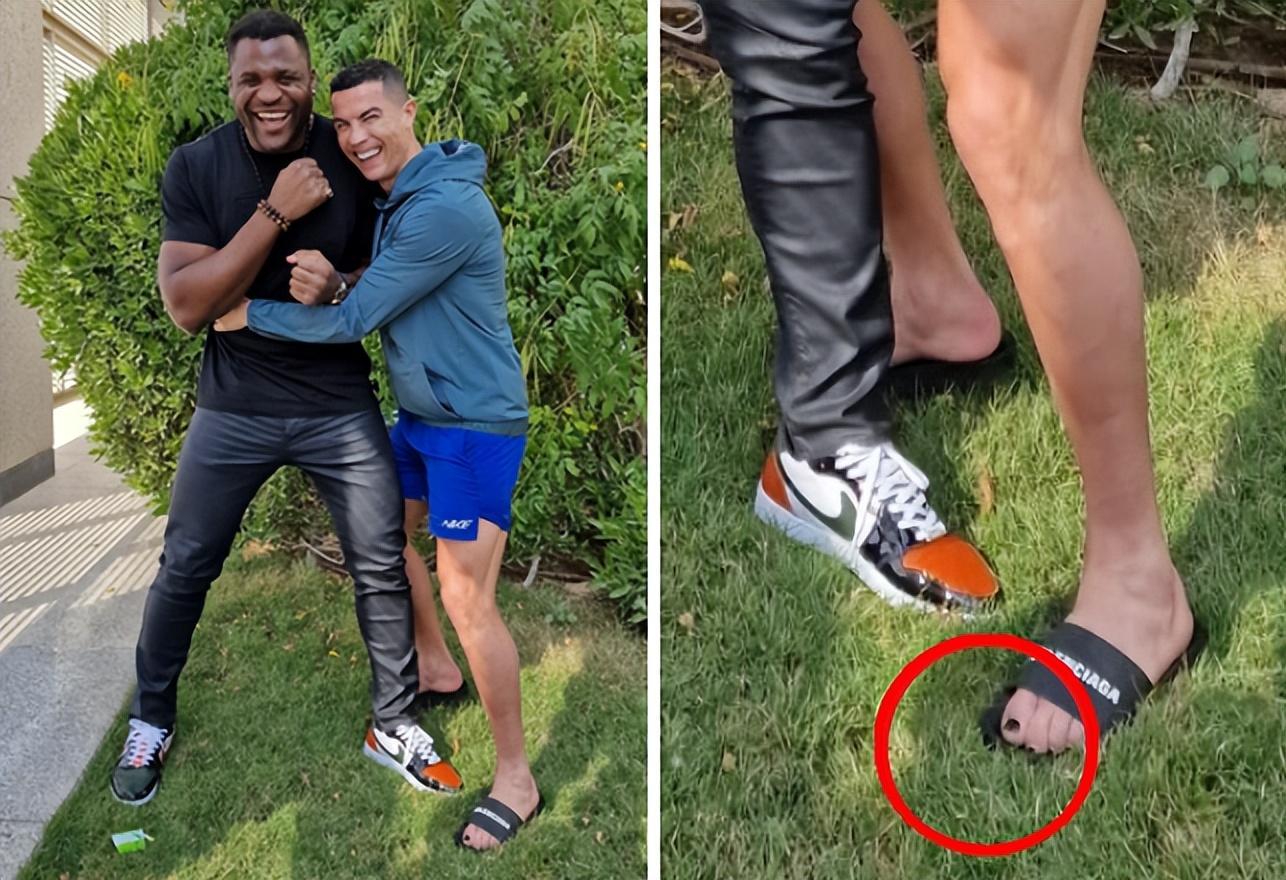 這次與黑人UFC冠軍同框,C羅瞬間顯得“小鳥依人”,要知道,葡萄牙巨星在綠茵場上還是非常強悍的,走的時候“身體對抗流”,肌肉塊頭大,彈跳力驚人,還算是魁梧型的足球運動員。不過,當他與弗朗西斯恩-甘努,反差太明顯了,C羅矮了對方半頭,身型也嬌小了很多,手臂更是顯得特別細,可以說,“人設瞬間崩了”!