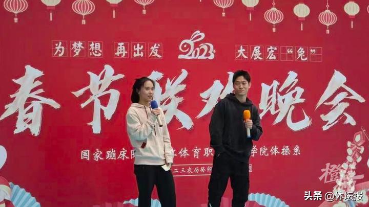 去年11月至今,國家蹦牀隊一直在杭州集訓,新春佳節,不僅在學院享用了豐盛的年夜飯,還和學院體操系的小隊員們辦了一場別開生面的春節聯歡晚會,東京奧運會蹦牀冠軍朱雪瑩(下圖左)擔當主持人一角。