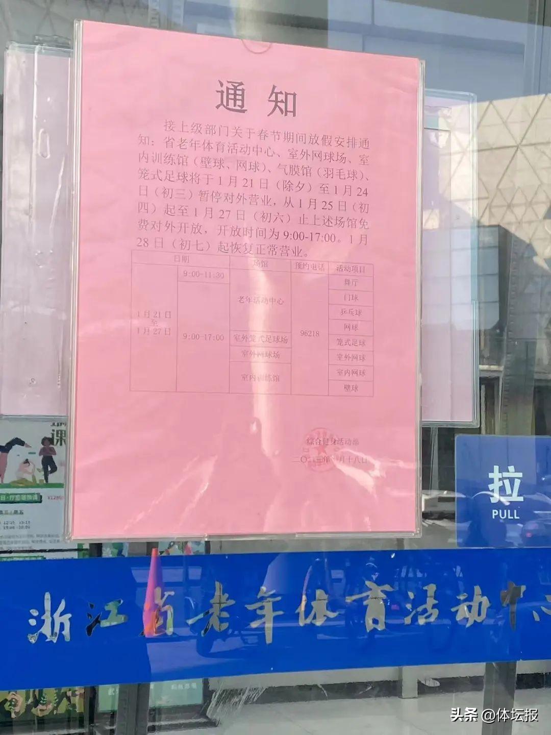 省老年活動中心(乒乓球、網球)、少兒體育館(羽毛球)、室外網球場、室內訓練館(網球、壁球)、室外籠式足球場:1月25日-1月27日7:00-17:00免費開放;