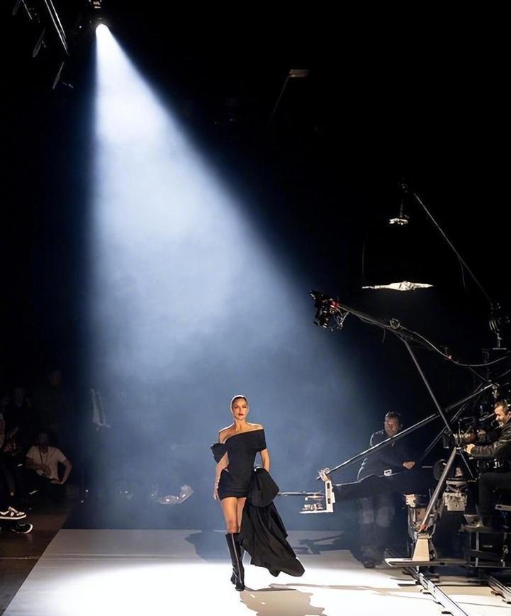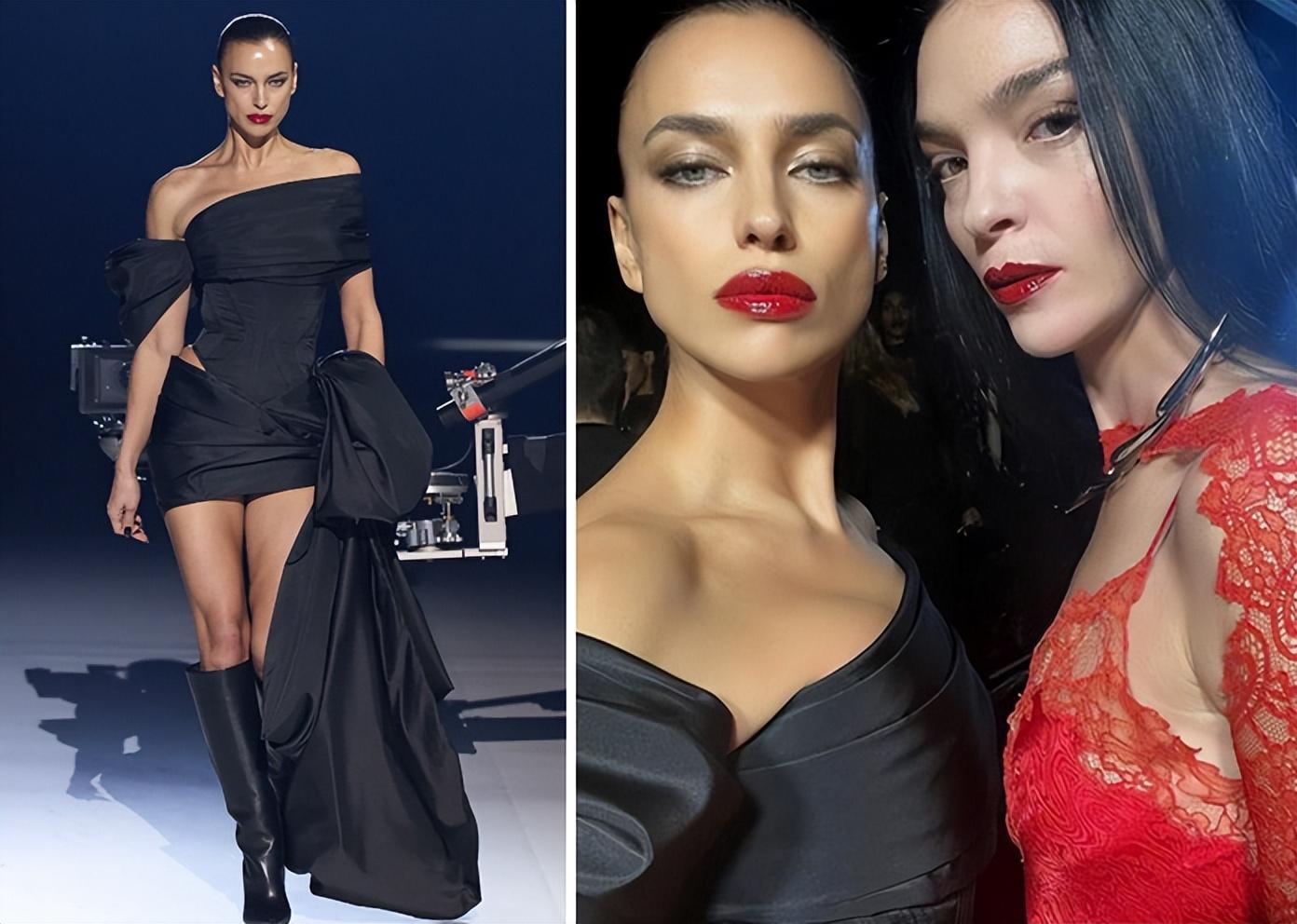 只見,37歲的伊蓮娜黑裙T臺造型,塗大紅脣。閃耀巴黎,真是好美,特別是那雙吸睛的大長腿,邁着自信又霸氣的步伐,氣場直接燃爆。