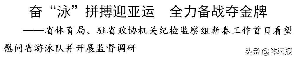 1月28日,兔年春節後上班第一天,駐省政協機關紀檢監察組組長、一級巡視員張文斌,省體育局黨組成員、副局長佔旭剛,浙江體育職業技術學院院長孟關良,專程赴紹興市上虞區游泳館看望慰問省游泳隊,送上新春祝福,並與學院游泳系班子成員和在此訓練的奧運冠軍汪順等重點運動員及相關教練員代表親切交談。