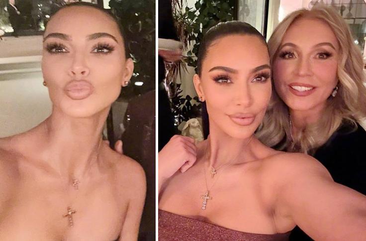 而42歲的金卡戴珊選擇一身抹胸緊身裙,大秀婀娜身段,誘人的鎖骨一覽無遺,金姐還綁了頭髮,顯得更加幹練精神,女強人的氣場瞬間顯露出來。
